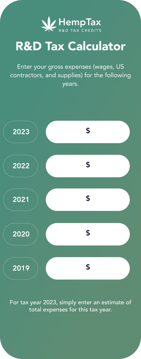 Use our Hemp Tax Calculator to estimate your potential benefit, and partner with HempTax to claim your benefits with no up-front costs. Contact one of our experts today.